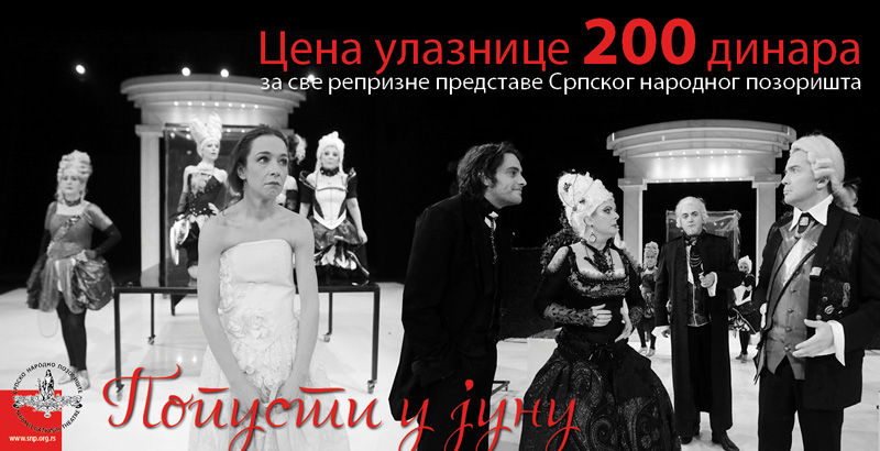 Цена улазница за све репризне представе Српског народног позоришта у јуну је 200,00 динара!